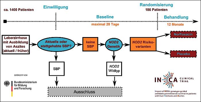 Der abgekürzte Studientitel INCA steht für die englische Übersetzung des Studiennamens: Impact of NOD2 genotype-guided antibiotic prevention on survival in patients with liver cirrhosis and ascites. Die vom Bundesministerium für Bildung und Forschung (BMBF) geförderte Studie wird deutschlandweit an aktuell mehr als großen Leberzentren durchgeführt, und federführend von Prof. Lammert, dem Direktor der Klinik für Innere Medizin II des Universitätsklinikums des Saarlandes, koordiniert.