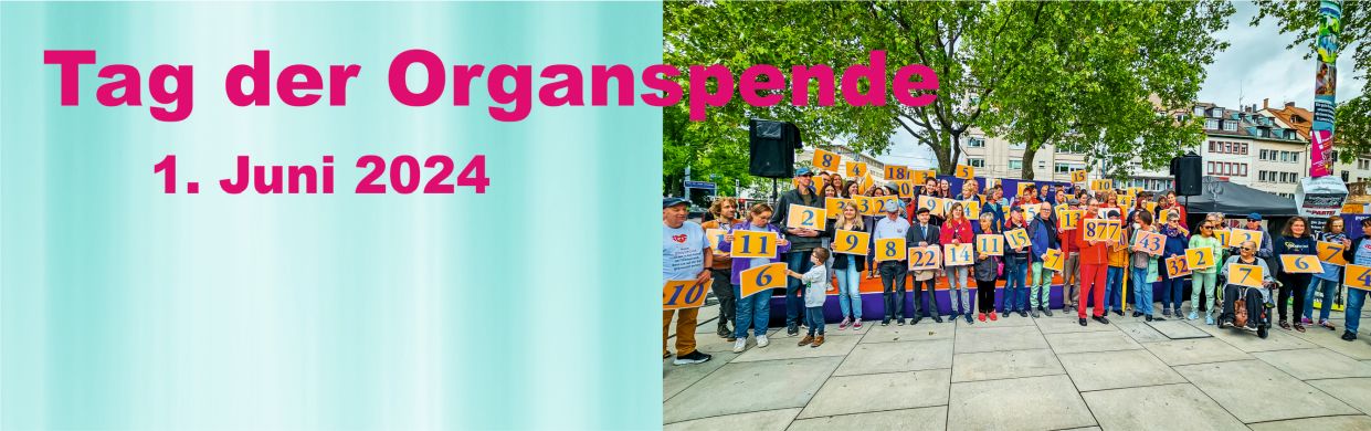 Viele Betroffene engagieren sich anlässlich der zentralen Veranstaltung zum Tag der Organspende am 1. Juni 2024 in Freiburg im Breisgau.