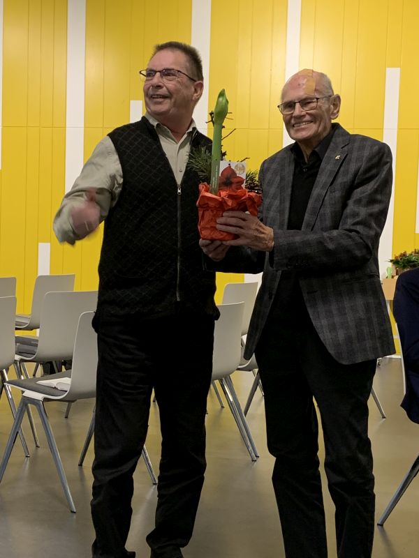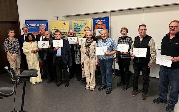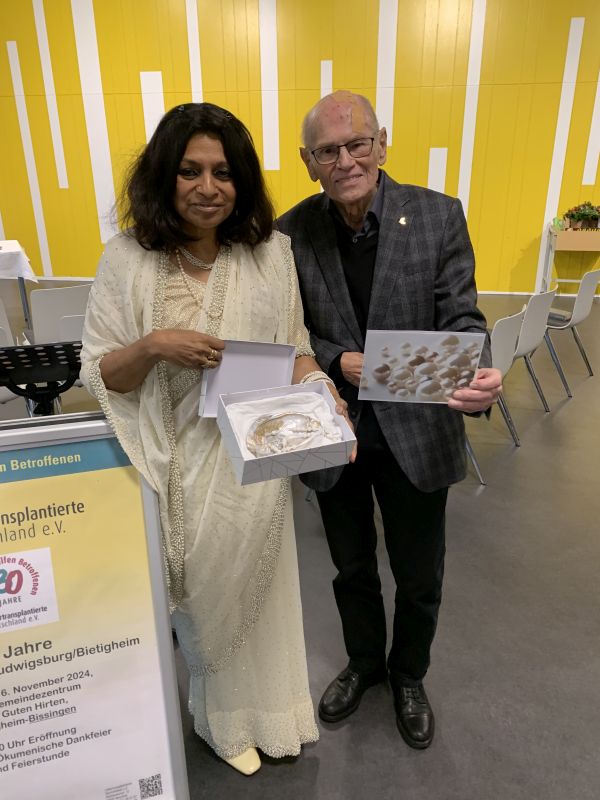 Frau Jutta Riemer, überbrachte als stellvertretende Vorsitzende des Bundesverbandes die Glückwünsche und den Dank des Vorstands. Sie berichtete von den Anfängen der Gruppe. Josef Theiss war seinerzeit bald nach der Gründung des Vereins im Dezember 1993 in den Verein – damals noch Selbsthilfegruppe Lebertransplantierter Heidelberg e.V. - eingetreten und begann nach seiner Genesung nach der Transplantation direkt damit eine Gruppe Betroffener als Anlaufstelle für Transplantierte, Wartepatienten und Angehörige rund um Ludwigsburg aufzubauen. Seither ist die Gruppe durchgehend aktiv. Josef verstand die Gruppe zusammenzuhalten, plante in all den Jahren verschiedene Aktivitäten. Von Gruppentreffen, Ausflügen über Vorträge, Weihnachtsfeiern und Flohmärkten für den Verein war alles dabei. Er beriet viele Ratsuchende telefonisch oder auch bei sich zu Hause, von diesen kam der eine oder andere danach zur Gruppe dazu. Seit 2019 teilen sich Günter Wanner und Josef Theiss die Aufgabe als Ansprechpartner für die Region. Die Gruppe durfte schöne und traurige Erlebnisse miteinander teilen. Leider kam es auch vor, dass ein endgültiger Abschied anstand. Umso berührender, dass gerade auch Hinterbliebene von transplantierten Mitgliedern an dieser Jubiläumsfeier dabei waren. Jutta Riemer wünschte der Gruppe weiterhin guten Zusammenhalt und bestes Gedeihen. Sie dankte zum Abschluss Josef Theiss mit einer Urkunde für 30 Jahre Patientenbetreuung und Aufbau und Leitung der Gruppe. Mit einem Blumengeschenk galt der Dank seiner Ehefrau Hedi Theiss, die eine großen Anteil an der ehrenamtlichen Arbeit hat, ebenso Günter Wanner und seiner Frau Ute, die seit über fünf Jahren mitarbeiten und unterstützen.