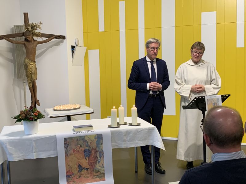 Die Ansprechpartner Josef Theiss und Günter Wanner hatten die Mitglieder der Gruppe aber auch Gäste aus den Nachbargruppen zu dieser Feier eingeladen. Nach einer Stunde Begrüßen, Wiedersehen und Erzählen begann das fest mit einer Andacht, die von den Krankenhausseelsorgern Pfarrer Thomas Dreher, Tübingen und Ulrike Priessnitz, Bietigheim sehr einfühlsam gestaltet wurden. Die Geschichte des barmherzigen Samariters zog sich durch die Predigt. Vincent van Goghs Bild mit demselben Namen illustrierte die Worte von Pfarrer Thomas Dreher bestens. Er sprach über die uneigennützige Hilfe gegenüber dem Nächsten. Diese Symbolik passt genau so gut zum Vorgang der altruistischen Organspende nach dem Tode oder zur Lebendspende wie zu unserem ehrenamtlichen Engagement für Mitbetroffene in der Zuwendung zu den Ratsuchenden vor und nach einer Transplantation. Mit einer kleinen, berührenden Symbolhandlung gedachten alle Gäste denjenigen, die nicht mehr unter uns sein können.